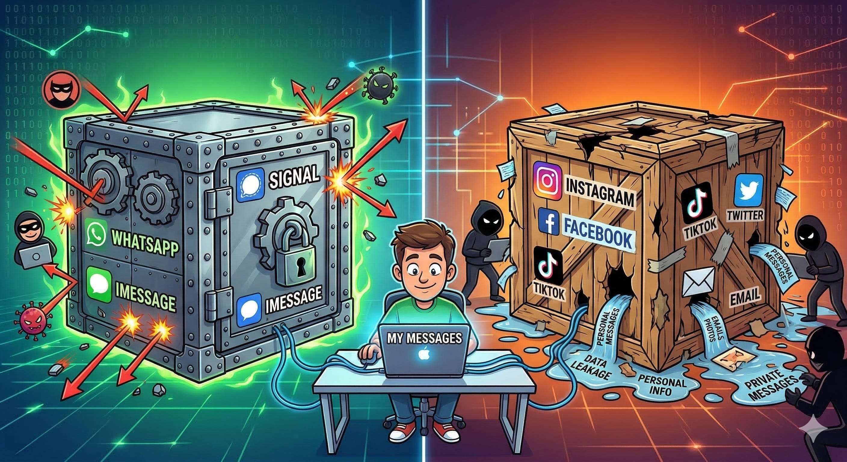 If your messages aren't end-to-end encrypted, they can be viewed, used, sold, stolen, or give up by the company or platform. Use E2EE services for private and secure communication.